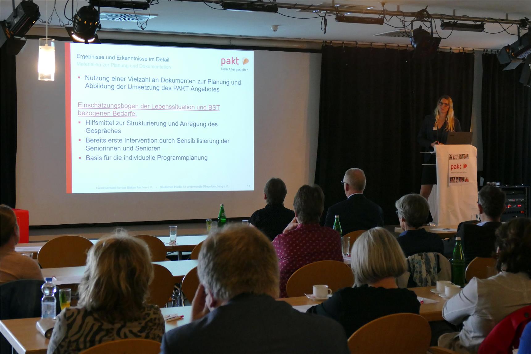 Der Leiter des Deutschen Instituts für angewandte Pflegeforschung (DIP), Prof. Dr. Frank Weidner, stellte beim Fachtag im Forum M in Aachen, mit dem am 24. September 2019 das Projekt PAKT (Präventives Alltagskompetenztraining) zu Ende ging, die Inhalte des Projektes vor.DiCV Aachen