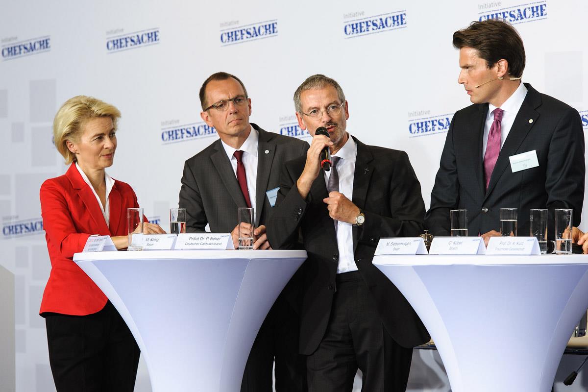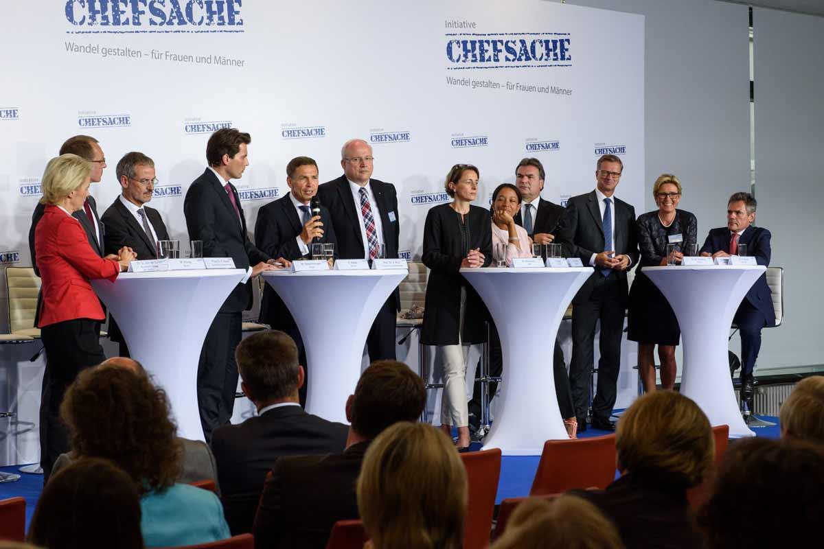 Die Gleichstellung von Männern und Frauen zur "Chefsache" machen: Dieses Ziel haben sich elf Organisationen aus verschiedenen Branchen und gesellschaftlichen Bereichen gesetzt. Neben dem Deutschen Caritasverband (DCV) sind das die Allianz, Bayer, Bosch, das Bundesministerium für Verteidigung, die Fraunhofer-Gesellschaft, IBM, McKinsey, Siemens, WAREMA Renkhoff und DIE ZEIT. Gemeinsam wollen die obersten Führungskräfte dieser Gründungsmitglieder nicht nur zu einem Wandel in ihren Organisationen, sondern in der Gesellschaft insgesamt beitragen: Noch immer, so die gemeinsame Überzeugung, sind es tief verankerte Rollenbilder, die das Kommunikations- und Entscheidungsverhalten in Wirtschaft und Gesellschaft bestimmen und Frauen von Spitzenpositionen fernhalten (www.initiative-chefsache.de).