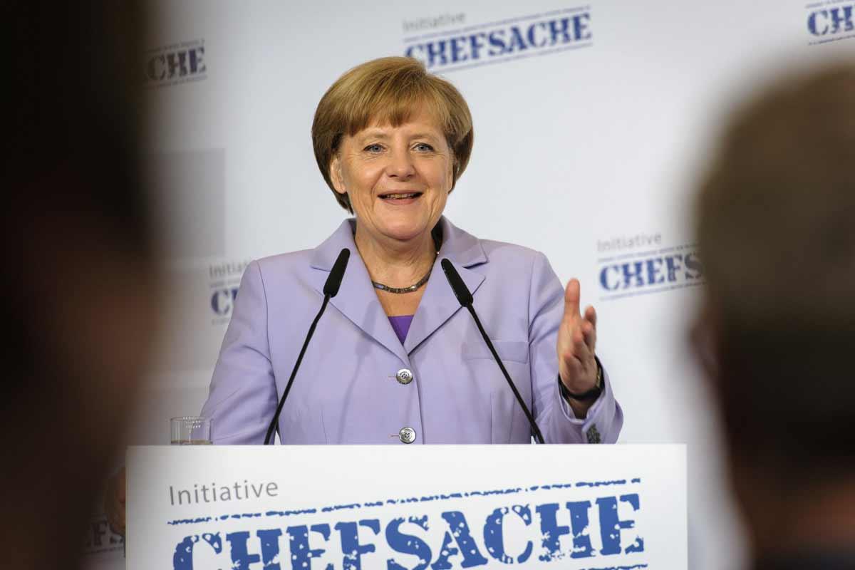 Die Führungskräfte der Gründungsmitglieder #InitiativeChefsache trafen sich zum Startschuss am 13. Juli 2015 in Berlin - mit Schirmherrin Angela Merkel.PHIL_DERA / McKinsey