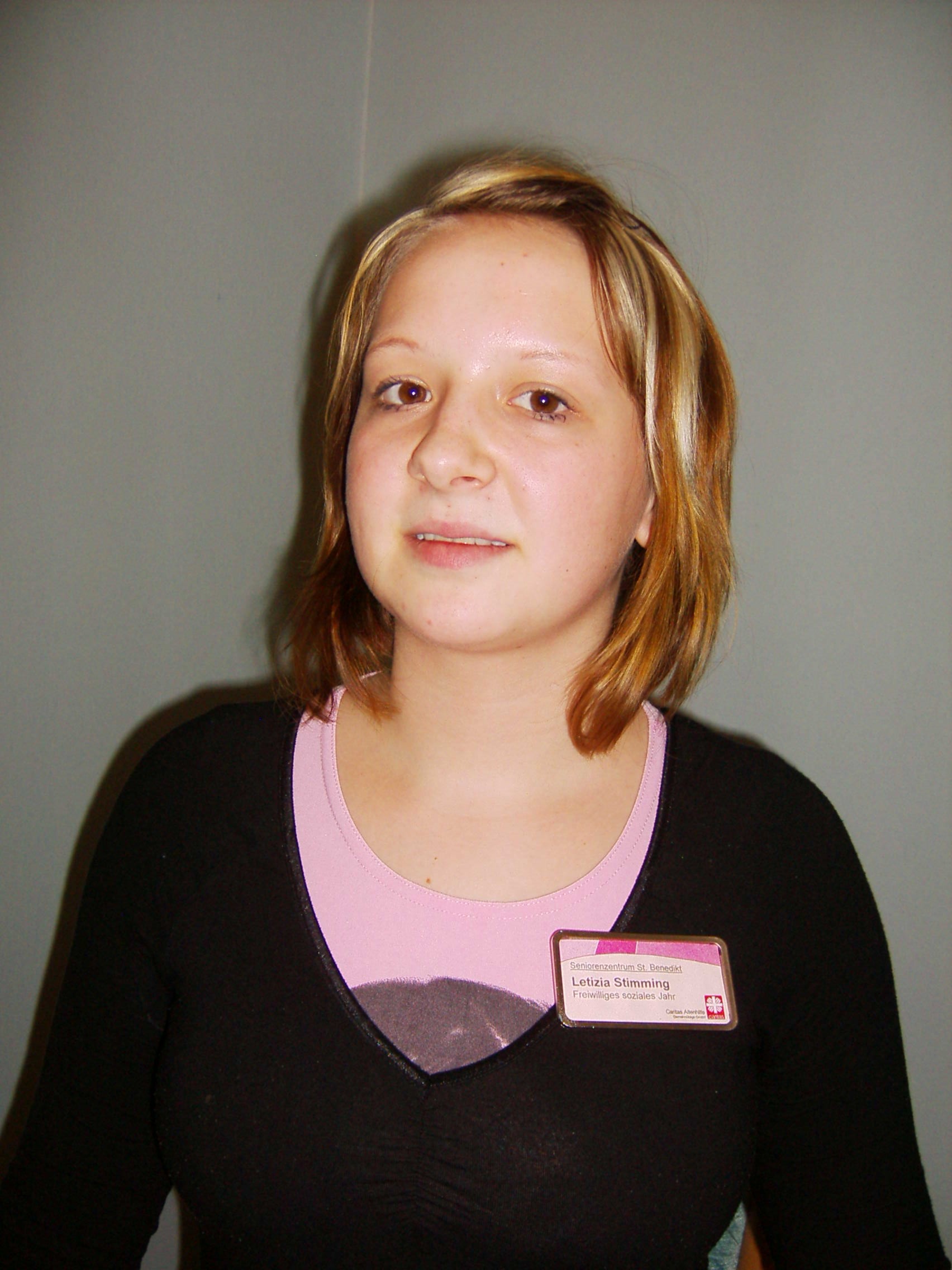 Seit September 2010 arbeitet sie in einer festen Wohngruppe mit 41 Bewohnerinnen und Bewohnern, von denen viele an Demenz erkrankt sind. Sie hilft beim Anziehen, beim Mittagessen und bei der Beschäftigung, 8 Stunden täglich, mal im Frühdienst, mal im Spätdienst. "Man muss viel Ruhe bewahren und Geduld haben", sagt Letizia Stimming, "aber ich kann mir einfach nichts anderes mehr vorstellen."