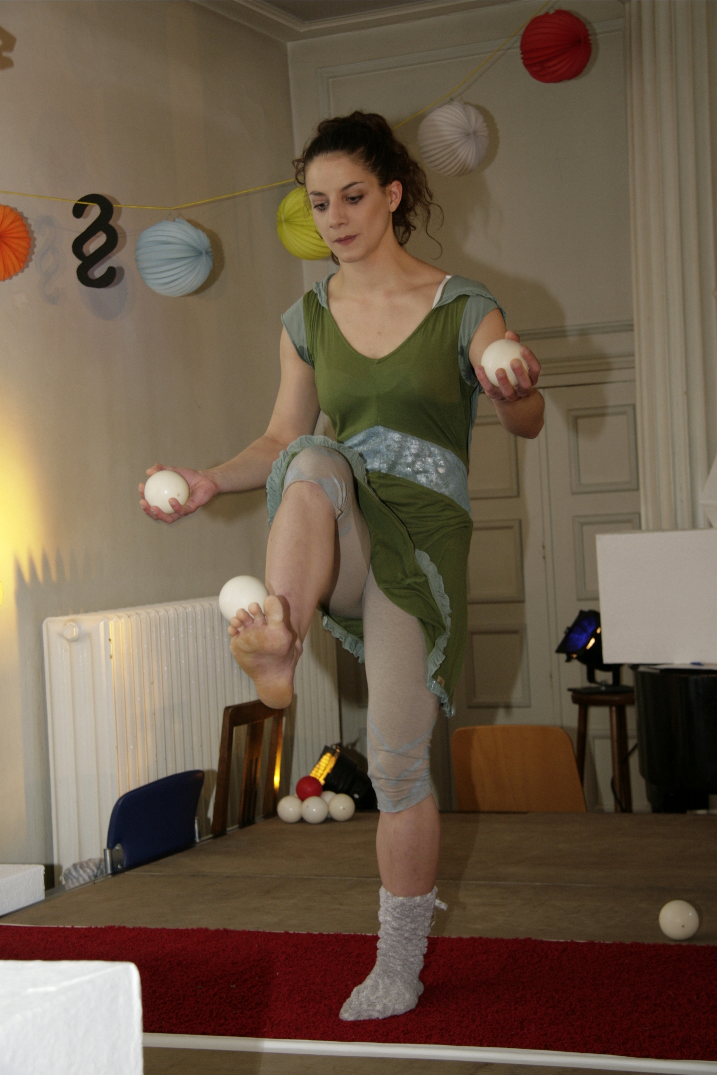 Wie schwierig es ist, "so viele Bälle gleichzeitig in der Luft zu halten", wurde durch Ariane Oechsner symbolisiert, eine junge Jongleurin, die mit Leichtigkeit ihre Kugeln durch die Luft wirbelte.Barbara Schwemmer
