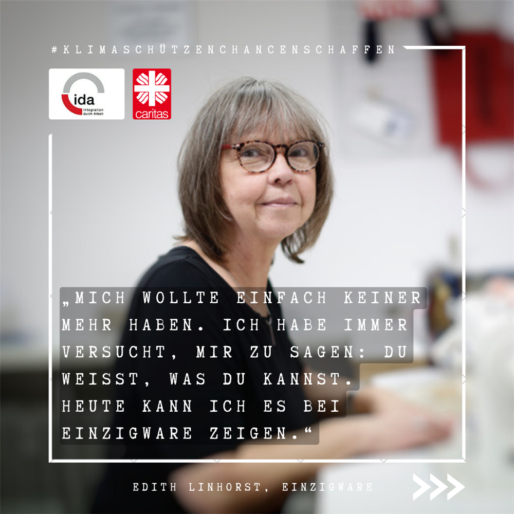 Von Dienstleistungen und Produkten der gemeinnützigen Beschäftigungs- und Qualifizierungsbetriebe profitiere auch die Umwelt, sagt Nolte: "Stromspar-Check, Sozial-Kaufhäuser, Upcycling-Label wie EiNZIGWARE oder Fahrradwerkstätten an Radstationen bieten Langzeitarbeitslosen Beschäftigung und Einkommen und dienen gleichzeitig dem Klimaschutz."