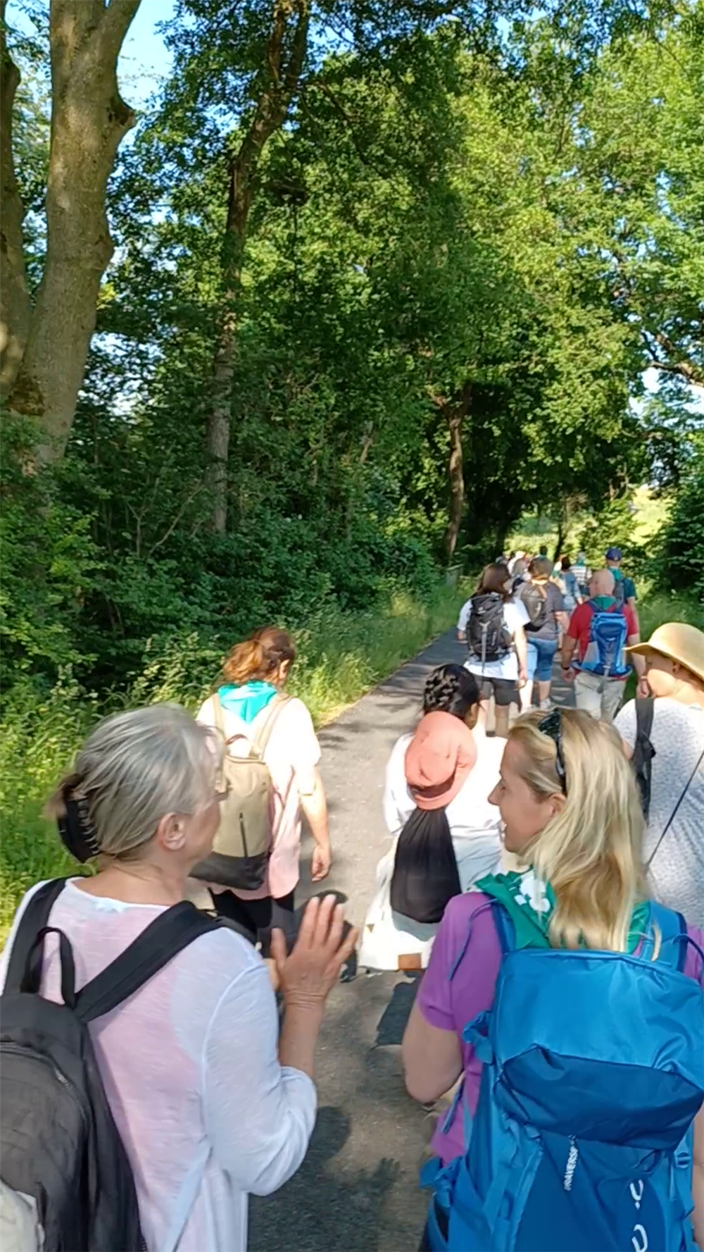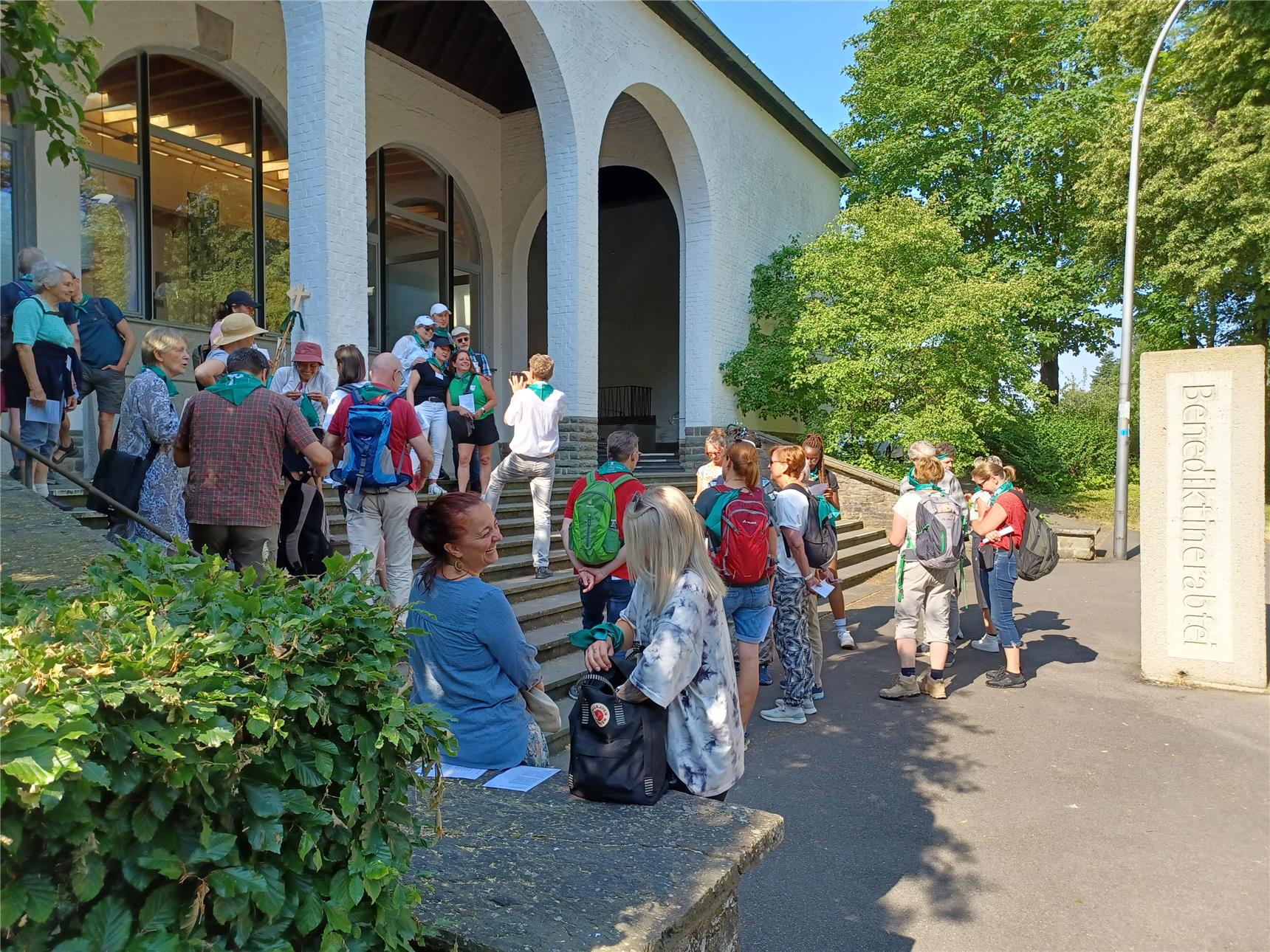 "Pilgern ist für mich unterwegs sein mit Menschen, mit mir selbst und mit Gott", sagte Diakon Winfried Zeller vom Caritasverband für die Region Düren-Jülich. Die Verbindung der Caritas zum Pilgern sieht er darin, dass die Mitarbeitenden in der Caritas - egal in welchen Einrichtungen sie tätig seien - mit Menschen unterwegs seien. "Wir begeben uns auf einen Weg mit diesen Menschen, und das passiert letztendlich beim Pilgern auch", sagte er. Dr. Alfred Etheber von der Stabsstelle für christliche Unternehmenskultur beim Caritasverband für die Regionen Aachen Stadt und Aachen Land sieht eine Verbindung zwischen dem Pilgern und den politischen Zielen der Caritas. "Pilgern geht immer auf ein Ziel hin. Die Ziele, die wir als Caritas verfolgen, sind soziale Ziele zur Verbesserung von Lebenslagen. Wir haben viele Zielanbieter, die destruktive Ziele in der Gesellschaft verbreiten. Sie tragen zur Entsolidarisierung und zur Förderung des Egoismus bei. Die Caritas hat das Gegenprogramm." Uschi Grab vom Caritasverband für die Region Eifel sagte, sie sei schon viele Pilgerwege gegangen. Deshalb gehe sie auch den Caritas-Pilgerweg zur Heiligtumsfahrt mit. Sie habe die Erfahrung gemacht, dass Pilgern auch dazu beitrage, sich selber näher zu kommen. "Ich freue mich, mit anderen in den Austausch zu gehen über Gott und die Welt. Das tut man im Alltag in der Regel nicht. Ich glaube, dass wir hier gemeinsam unterwegs sind, weil wir grundsätzlich eines Geistes sind. Und dabei gibt es viele Nuancen. Und diese Nuancen heute mitzubekommen, finde ich spannend", sagte Uschi Grab.