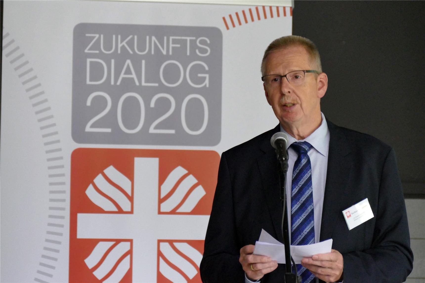 Schmolze-Krahn, Berater für Digitalisierung in Non-Profit-Organisationen bei der Kopf-Consulting GmbH, war Hauptreferent der Veranstaltung, die der Diözesancaritasverband als zusätzliche Wegmarke in die Veranstaltungsreihe zum Zukunftsdialog "Caritas 2020" im Bistum Aachen eingebaut hatte. Diözesancaritasdirektor Burkard Schröders spannte bei seiner Begrüßung im Tuchwerk den Bogen zur Auftaktveranstaltung des Zukunftsdialogs Caritas 2020 im Bistum Aachen vor zwei Jahren im Energeticon in Aachen. "Eine der damaligen Fragen lautete, ob wir der Zukunft - und bereits damals hatte die Digitalisierung eine herausgehobene Rolle in unserer Thematisierung von Zukunft - eher gelassen oder beunruhigt entgegenblicken können. Und schon damals wurde klar, dass dies in erheblichem Maße auch davon abhängt, wie wir uns als Verband auf diese Zukunft einstellen", sagte Schröders.