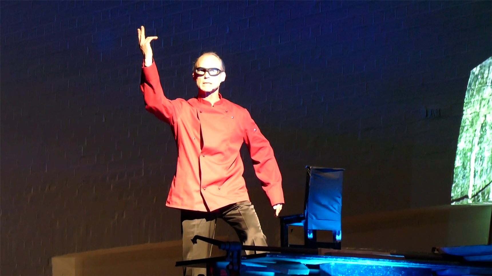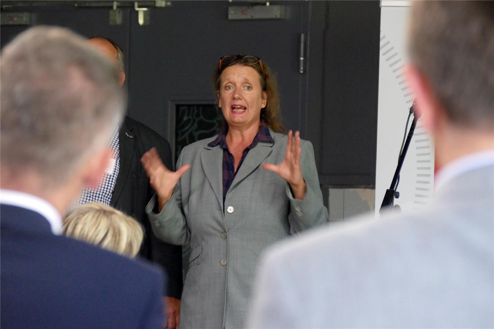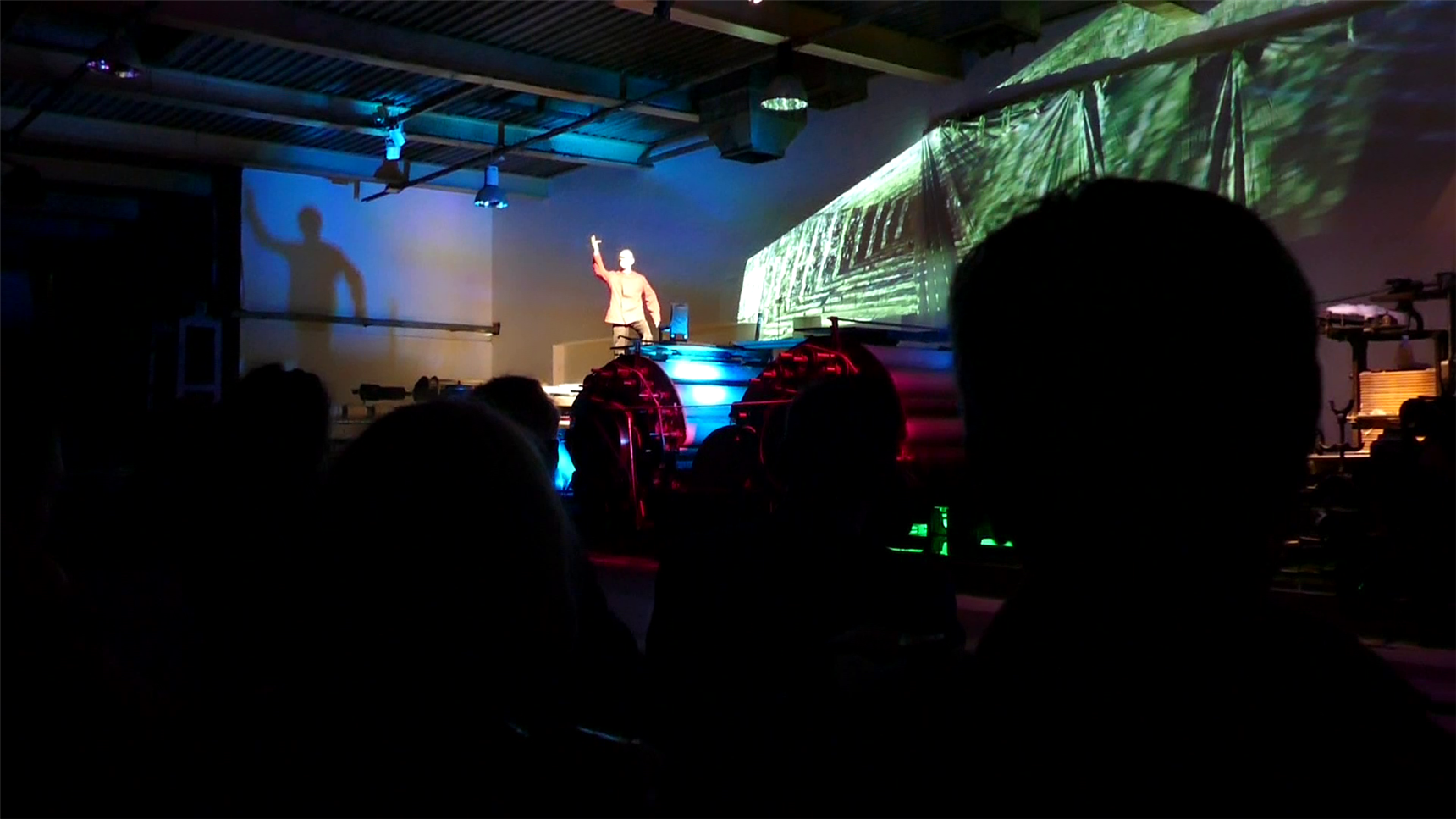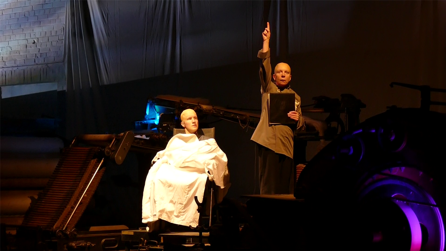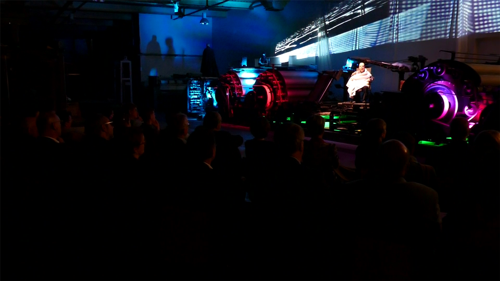 Umrahmt wurde diese wie auch die anderen Veranstaltungen des Zukunftsdialogs von Spielszenen des Theaters K. Denn das Tuchwerk Aachen ist die Spielstätte des Ensembles. Es zeigte das Theaterstück "Utopia Machina XXL", das Mona Kreutzer im vergangenen Jahr inszenierte. Es entführte die Zuschauer in die Welt der Maschine "M" und ihre an Technik glaubende Gesellschaft. Die Spielstätte, eine ehemalige Textilfabrik, symbolisiert die industrielle Transformation als Vorstufe einer begonnenen digitalen Transformation.