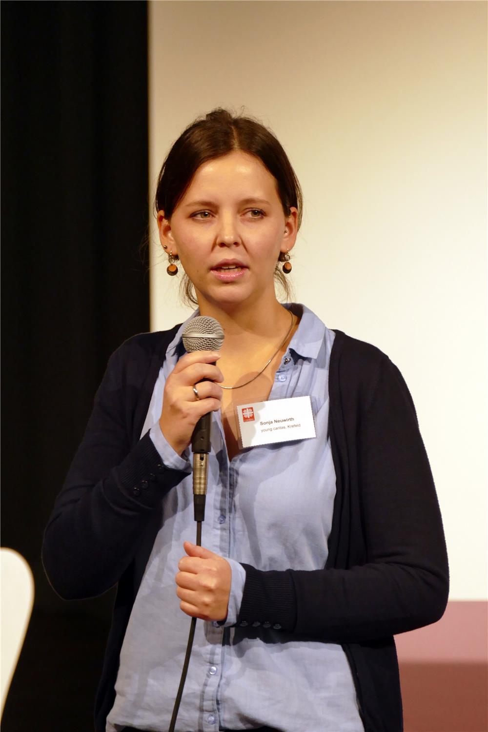 Sonja Neuwirth von youngcaritas in Krefeld berichtete über die Ziele, die youngcaritas verfolge, und die Herangehensweise, junge Menschen für soziales Engagement zu gewinnen. Hierbei hob sie die besondere Bedeutung sozialer Medien hervor, durch die sich gerade junge Menschen ansprechen ließen. Auch für diese Zielgruppe bestätigte Neuwirth eine Entwicklung, die sich im ehrenamtlichen Engagement allgemein zeigt: Menschen engagieren sich tendenziell nicht mehr langfristig, sondern punktuell und zeitlich befristet. Diese Entwicklung, so Neuwirth, bereite ihr jedoch keine Sorgen: Durch interessante Angebote und eine professionelle Gewinnung und Begleitung Ehrenamtlicher ließen sich diese in wiederholten punktuellen Engagements auch längerfristig an die Caritas binden.