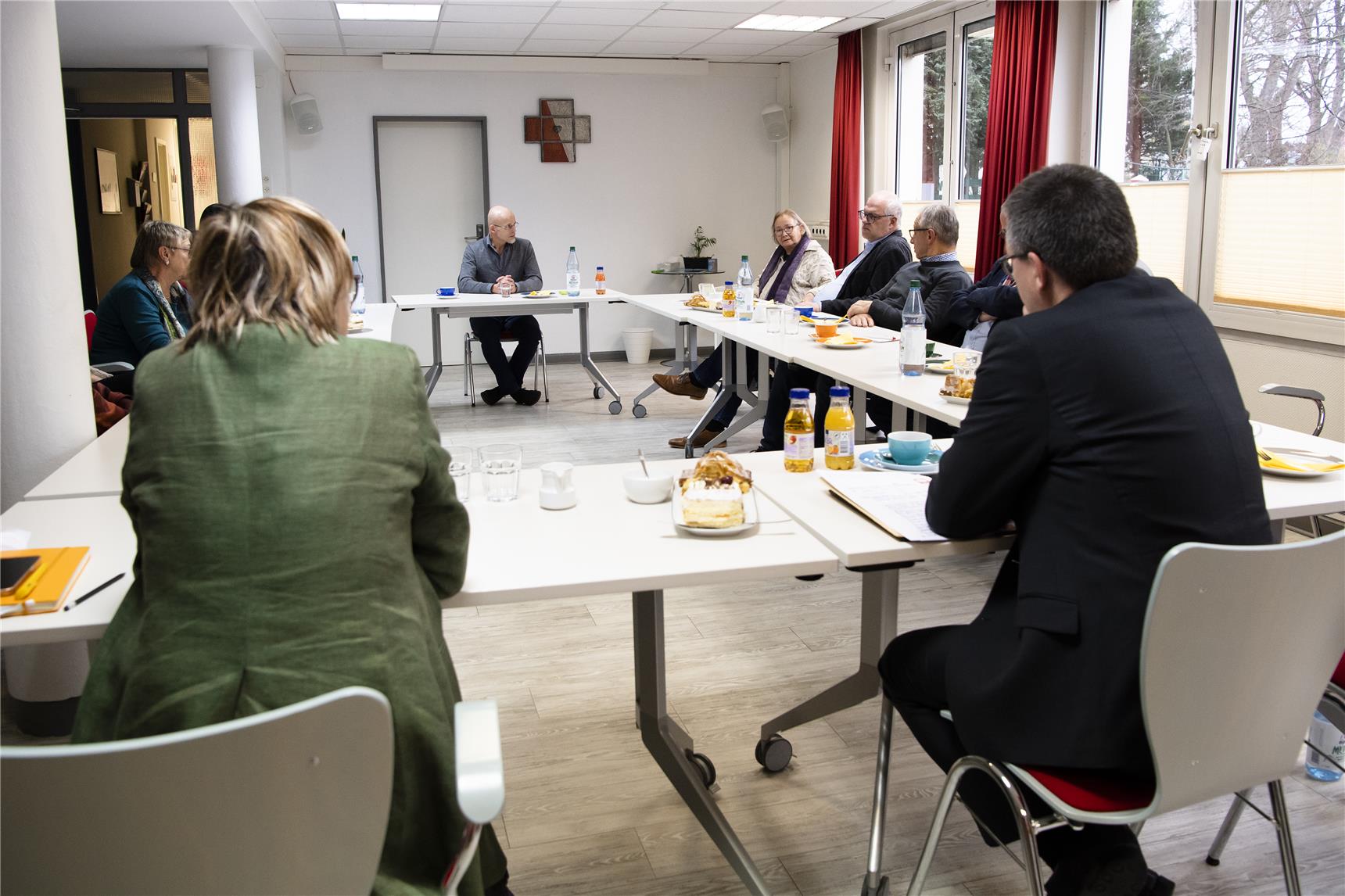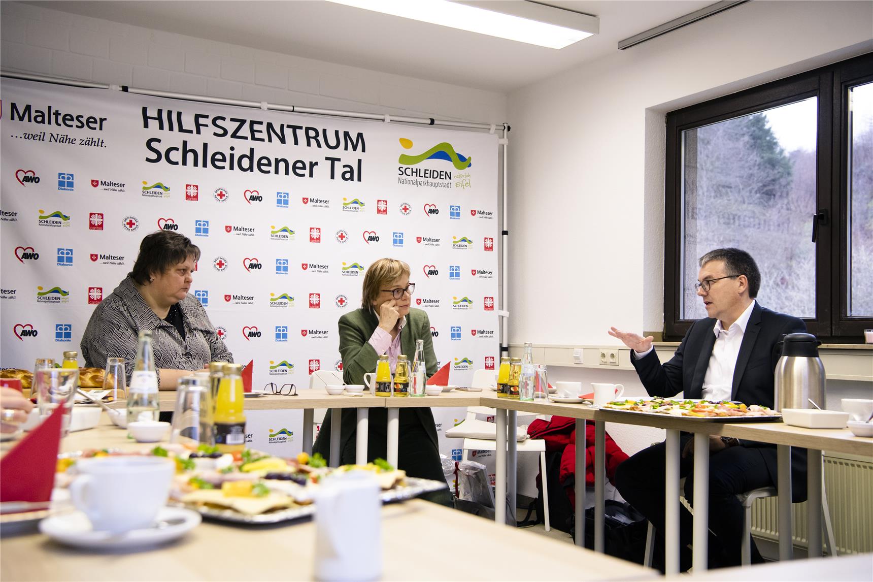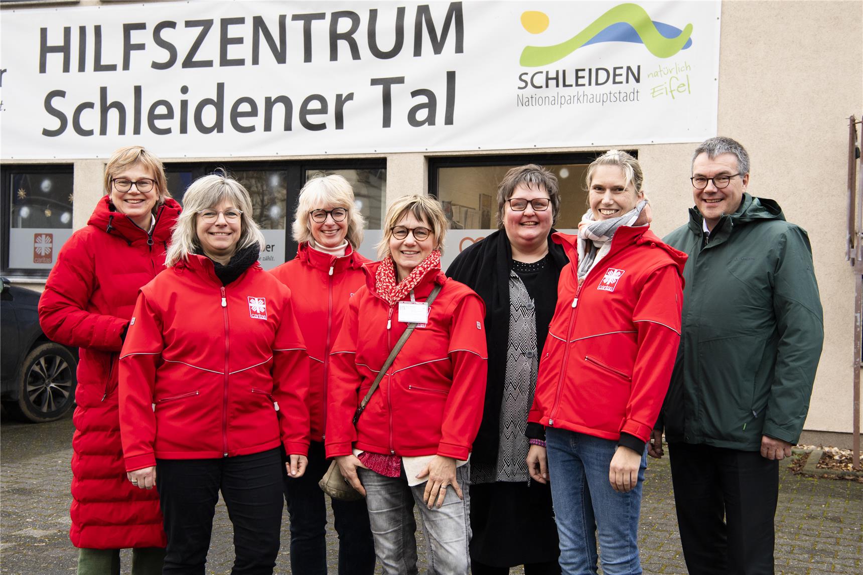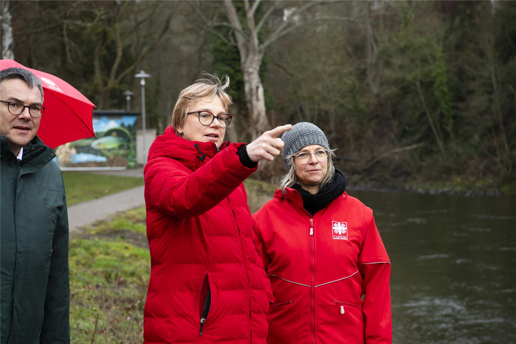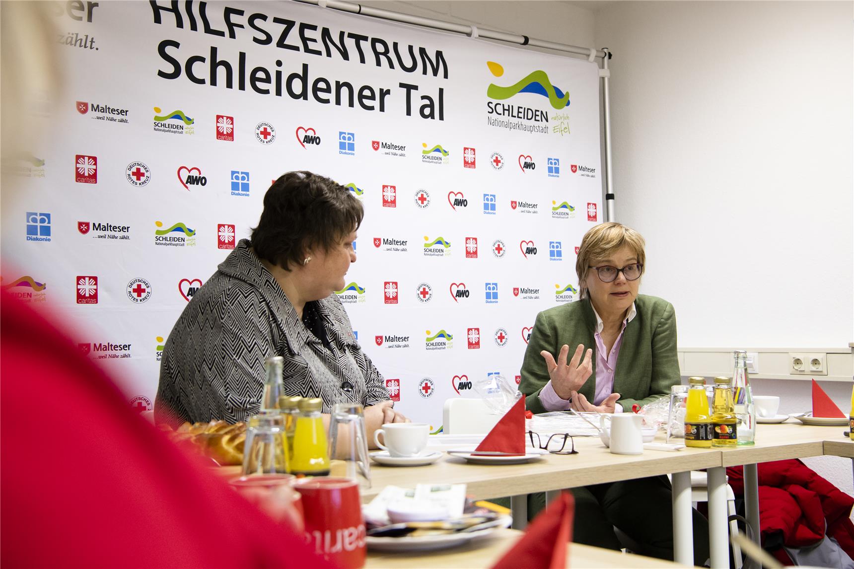 In Stolberg begrüßte Manfred Lang, Geschäftsführer des SKM Stolberg, auch im Namen der Geschäftsführerin des SkF Stolberg, Margit Schmitt, die Präsidentin des Deutschen Caritasverbandes. Erst durch die schnelle Bereitstellung von Spendenmitteln durch Caritas international hätten die Fachverbände SKM und SkF in Stolberg nach der Flutnacht im Sommer 2021 schnell helfen können, sagte Lang. Zu dem Treffen mit der Präsidentin waren auch Mitarbeiterinnen des SkF Eschweiler gekommen. Auch diese Stadt war von der Flut schwer betroffen, die Fachverbände organisieren auch dort bis heute die Fluthilfe.