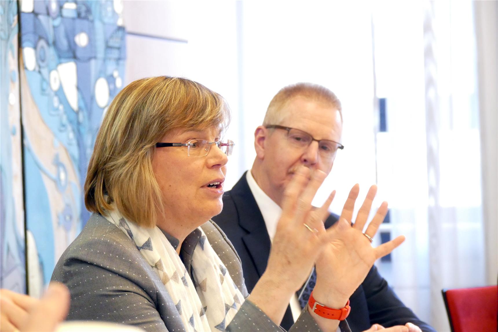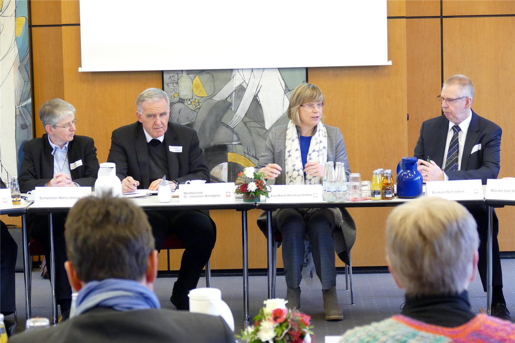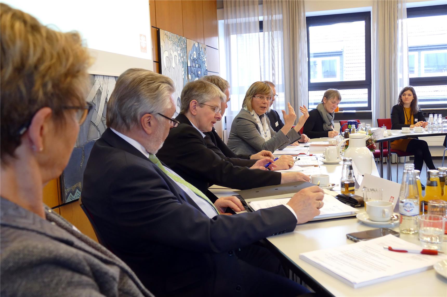 Bei der Sitzung des Diözesancaritasrates des Caritasverbandes für das Bistum Aachen am Freitag, 9. März 2018, sprach Eva Maria Welskop-Deffaa (l.), Vorstand Sozial- und Fachpolitik des Deutschen Caritasverbandes in Freiburg, über die Herausforderung der Digitalisierung. Rechts Diözesancaritasdirektor Burkard Schröders.DiCV Aachen