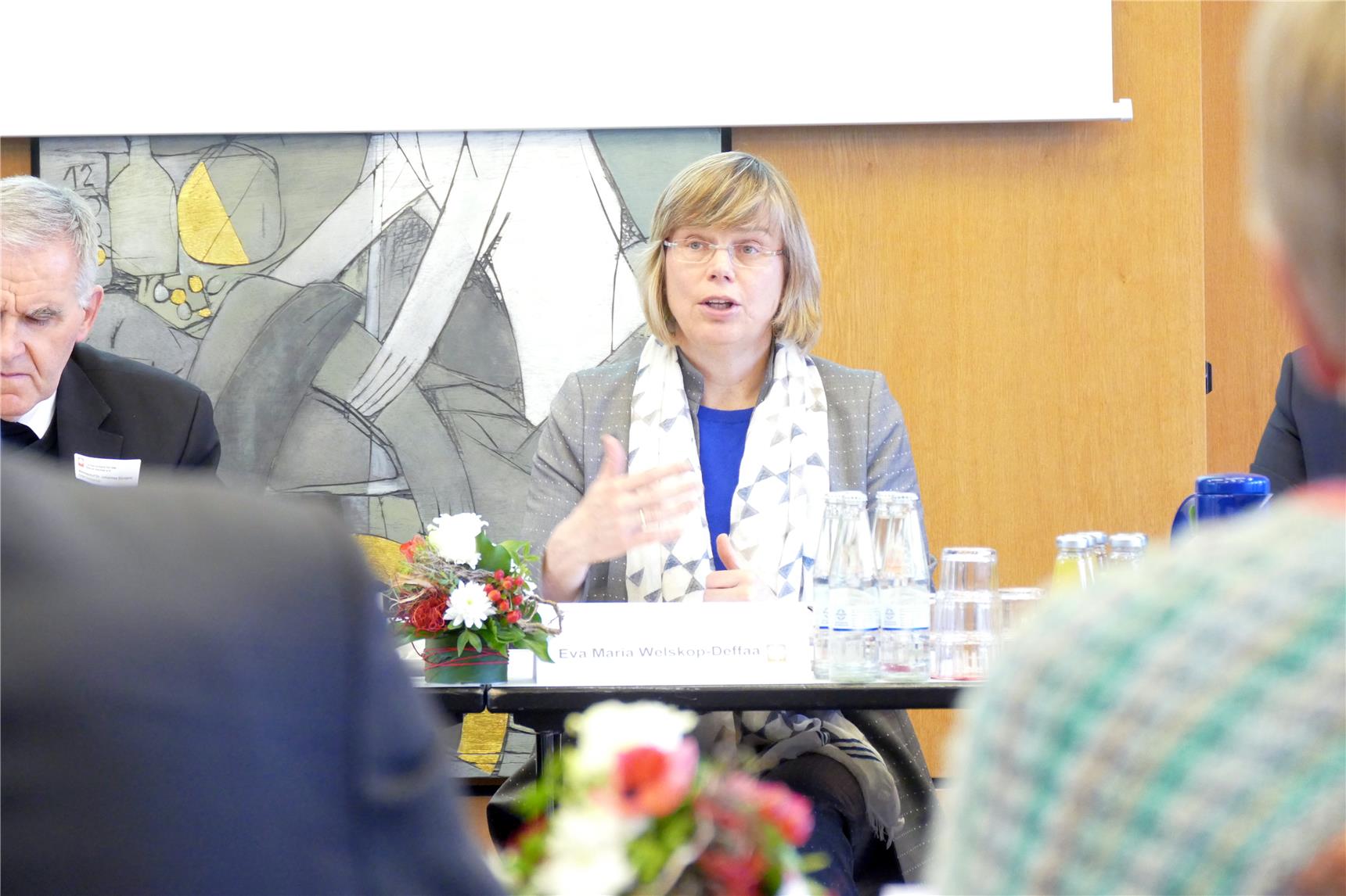 Die Stärkung des gesellschaftlichen Zusammenhalts ist für Eva Maria Welskop-Deffaa ein Synonym für die Arbeit der freien Wohlfahrtspflege in Deutschland. Denn die Arbeit von Caritas und den anderen Wohlfahrtsverbänden stärke den gesellschaftlichen Zusammenhalt. Mit Sorge betrachte sie allerdings, dass die Freie Wohlfahrtspflege im Koalitionsvertrag für die Große Koalition in Berlin nur einmal erwähnt werde. Auch wenn der Vertrag aus Sicht der Caritas starke Kapitel habe müsse sie konstatieren, dass die Politik die Wohlfahrtsverbände nicht als Partner sähen. Die Caritas könne aber ihre Aufgaben nur dann erfüllen, wenn die Rahmenbedingungen stimmten. Sie frage sich, ob es dafür auf Seiten der Politik Verständnis gebe.