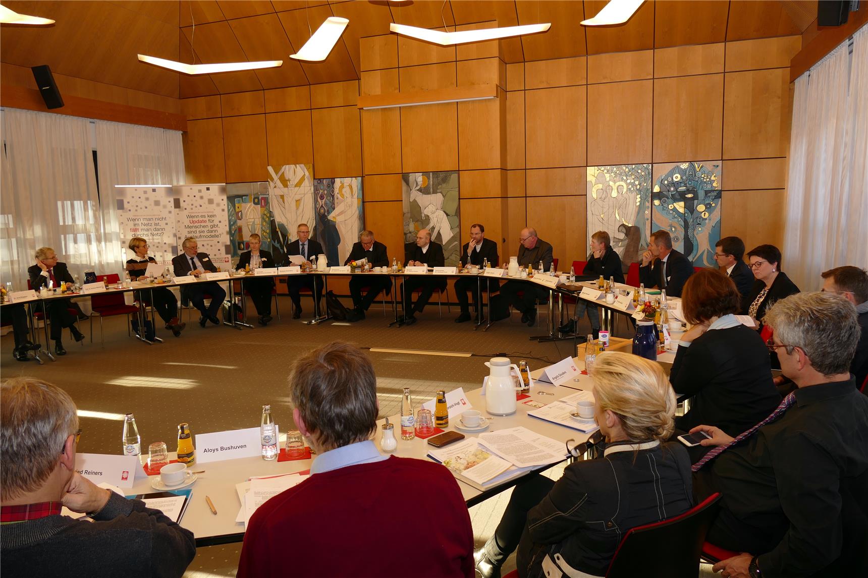 Gäste des Diözesancaritasrates waren bei der jüngsten Sitzung der Aachener Bischof Dr. Helmut Dieser und Generalvikar Dr. Andreas Frick. Sie informierten über die erste Phase des synodalen Gesprächsprozesses im Bistum Aachen "Heute bei Dir" und stellten den Bericht der Lenkungsgruppe mit ihren Empfehlungen vor. In diesen Bericht waren auch Berichte der Teilprozessgruppen eingeflossen, an denen Vertreterinnen und Vertreter der verbandlichen Caritas im Bistum Aachen beteiligt waren. Für den Vorstand des Caritasverbandes für das Bistum Aachen gab Diözesancaritasdirektor Burkard Schröders eine erste Stellungnahme ab. Bischof Dieser dankte den Mitgliedern des Diözesancaritasrates für die ersten Rückmeldungen und Empfehlungen. Um allerdings alle Empfehlungen der Lenkungsgruppe ausführlich würdigen zu können, beschloss der Diözesancaritasrat, bis zur nächsten Sitzung im März 2020 erneut dazu zu beraten.