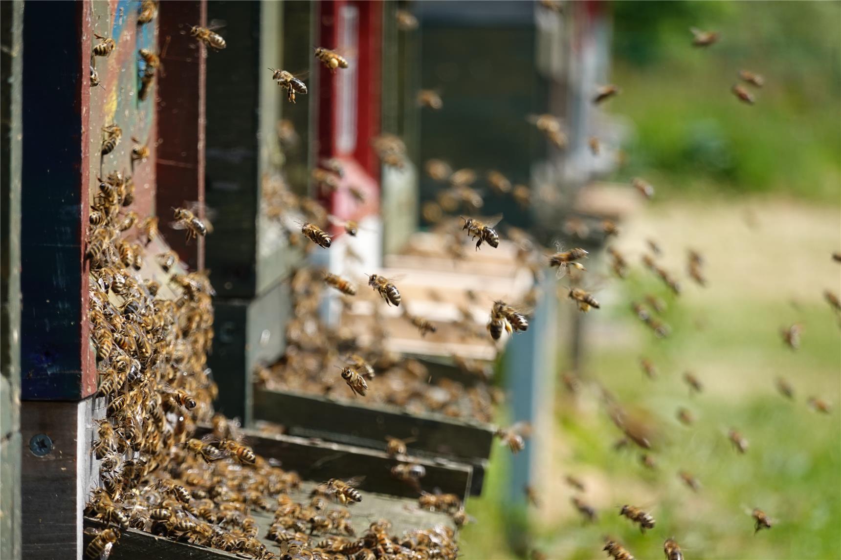 Dass Bienen ein Gebiet im Radius von fünf Kilometern kartieren und bestäuben. Dass Honigbienen 35 arbeitsreiche Tage leben, keinen Feiertag haben, immer neue Aufgaben übernehmen, in festgelegter Reihenfolge, nach Alter. Dass Waben geometrisch exakt gebaut werden. Dass es immer zwischen 34 und 36 Grad im Inneren der Bienenbeute ist, die Bienen also mit Flügelschlag und Wasser kühlen und mit Muskelkraft heizen. Dass sich Bienenvölker teilen, wenn man nicht aufpasst. Und und und.
