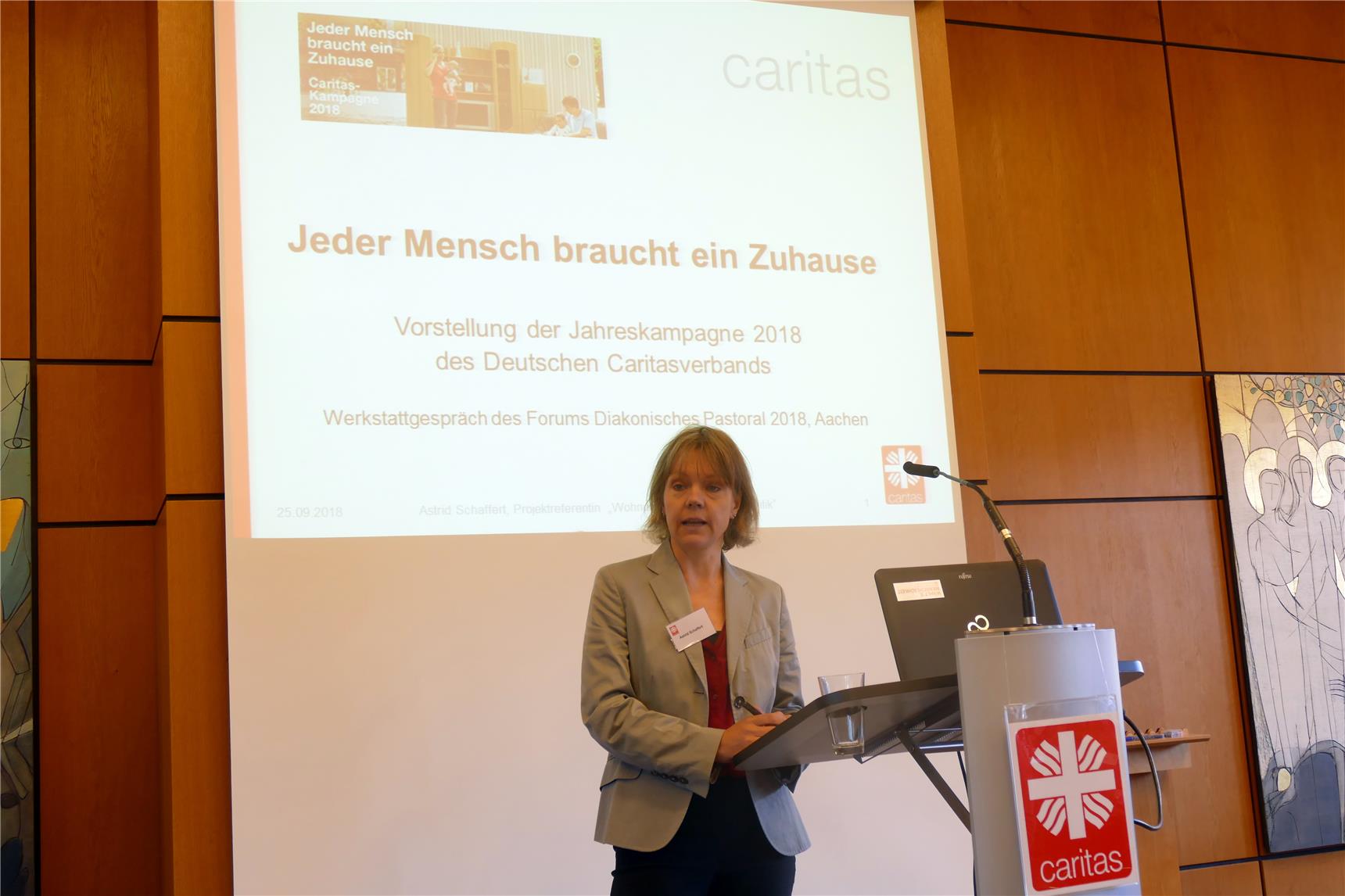 Schaffert äußerte sich beim Werkstattgespräch 2018 des Forums Diakonische Pastoral im Bistum Aachen. Vertreter aus der Seelsorge, dem Diözesanrat der Katholiken und der Caritas diskutierten dabei das Thema "Wohnen im Wandel - kein Zuhause? - Miteinander Leben als Aufgabe für die Diakonische Pastoral".