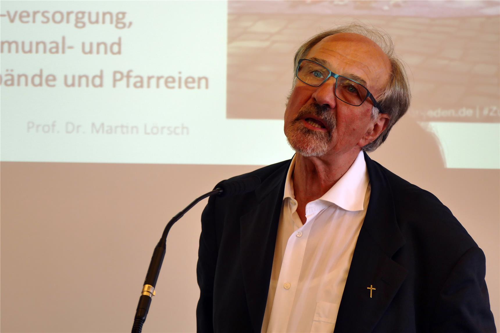 Prof. Dr. Martin Lörsch, Pastoraltheologe an der Theologischen Fakultät Trier, sagte, die gegenwärtige Wohnsituation und der Mangel an bezahlbarem Wohnraum sei eine Herausforderung für die Kirche und für ihre Seelsorge. Er plädierte daher in seinem Vortrag zum Thema "Irgendwo möchte ich zuhause sein - Wohnen und Handeln im Sozialraum aus Sicht der Pastoraltheologie" dafür, in der Seelsorge stärker sozialraumorientiert zu denken und zu arbeiten. Das sei in der Caritas schon Gang und Gäbe, in der Seelsorge noch weitgehend unbekannt. Er verwies in diesem Zusammenhang auf eine Studie, die die Theologische Fakultät im Vorfeld der Trierer Synode in Aach bei Trier 2013 gemacht habe. Die meisten Befragten hätten darin ihre Situation dort so beschrieben: "Ich wohne im Dorf und Lebe in der Region." Diese Aussage zeige ihm, dass das Territorialprinzip in der Seelsorge weitgehend an Bedeutung verloren habe. Wenn bei der Kirche seelsorgerische Dienste nachgefragt würden, hingen sie sehr stark zusammen mit biografischen Ereignissen wie Geburt, Heirat und Tod. Der regelmäßige Gottesdienstbesuch habe selbst im Dorf nachgelassen, obwohl dort das religiöse Brauchtum noch stark verwurzelt sei.